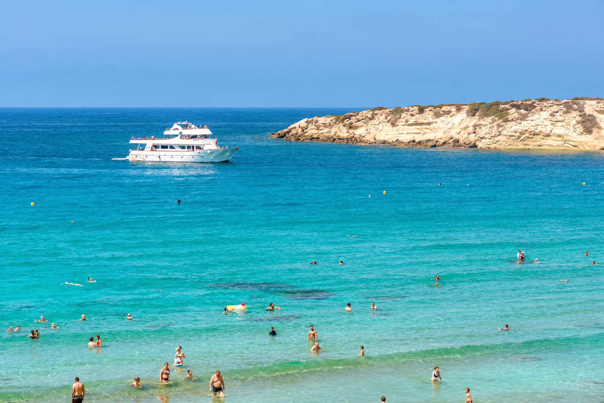Popływasz na Nissi Beach lub Konnos Bay.