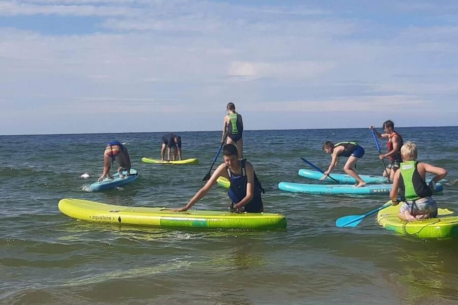 To połączenie tzw. longboard z kajakiem, przez co zapewnia stabilność i wygodę manewrowania. SUP jest aktywnością, która przekona osoby nie do końca swobodnie czujące się w wodzie. Wystarczy do tego odpowiednia deska z wiosłami czyli paddelboard. Ważna jest umiejętność utrzymania równowagi i właściwego balansowania ciałem. SUP szybko uczy właściwej sylwetki i umiejetności umiejętności. To idealne rozwiązanie dla tych, którzy nie chcą spróbować surfingu, kitesurfingu lub innych aktywności, które wiążą się z większym ryzykiem. W cenie lekcja pływania + 2 godziny pływania, zabezpieczenie instruktora, deski oraz kapoku.|